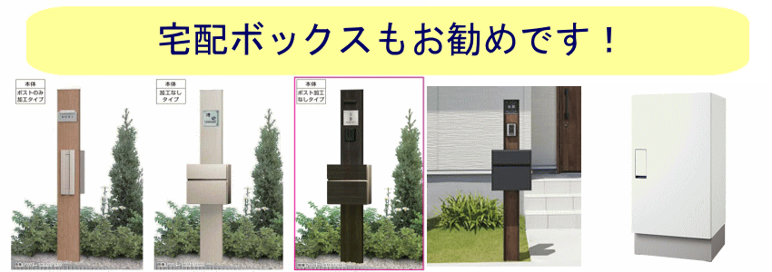オープンの場合は機能門柱が多く使われます。ポスト・表札・インターホン・照明が一体となった門柱です。